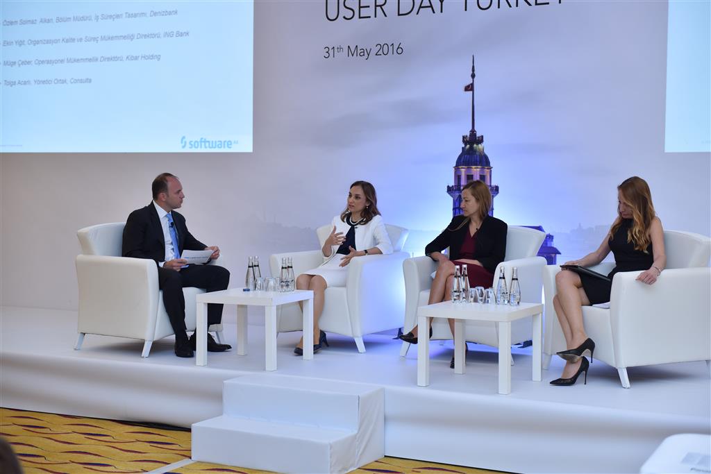 Sonrasında Kibar Holding Operasyonel Mükemmellik Direktörü Müge Çeber, ING Bank Organizasyon, Kalite ve Operasyonel Mükemmellik Direktörü Ekin Yiğit, Tolga Acarlı (Consulta Yönetici Ortağı) moderatörlüğünde panelin en değerli konularından biri olan dijital dönüşüm kavramının sektöre özgü çözümlerine değindiler.