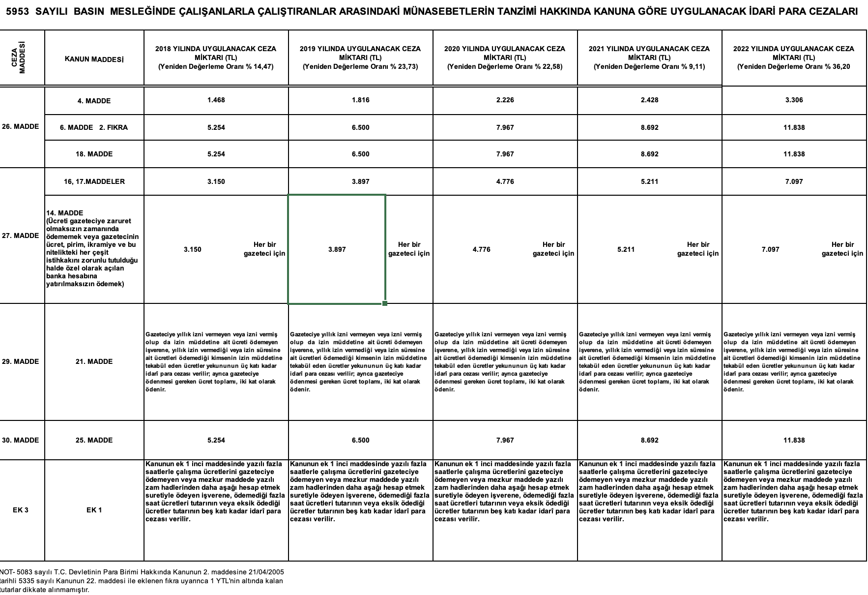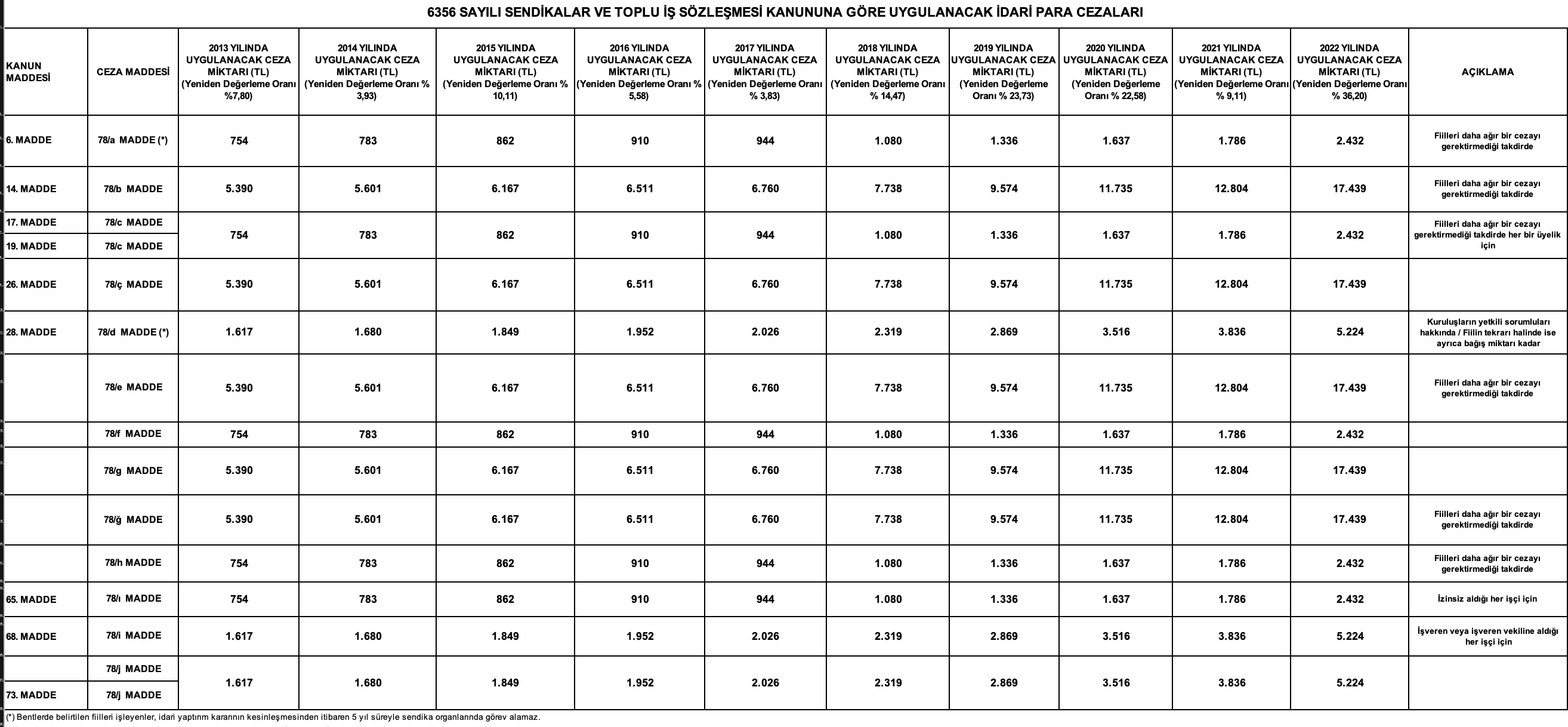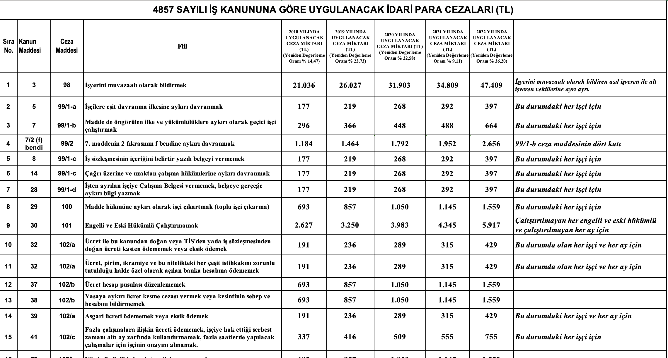 • Uygulanan idari para cezaları, her yıl yeniden değerleme oranı ile güncellenmektedir.
