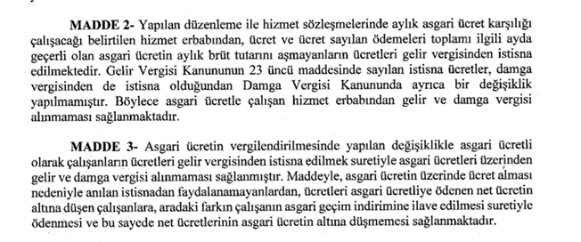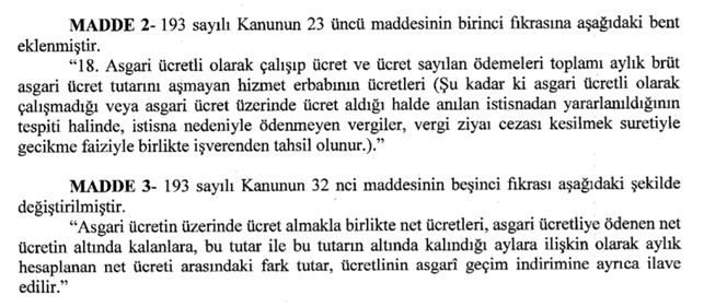 Yarım saat önce Meclise sunulan Kanun teklifi ile dün paylaşılan ve Bakanlık resmi sitesinde yer alan “Bakanlık resmi sayfasında yapılan duyuruda “Tüm işçilerin ücret gelirlerinin, asgari ücrete kadar olan kısmından gelir ve damga vergileri kaldırıldı.” İfadesinin tam tersi hükme yer verilmiştir. (https://www2.tbmm.gov.tr/d27/2/2-4031.pdf)
